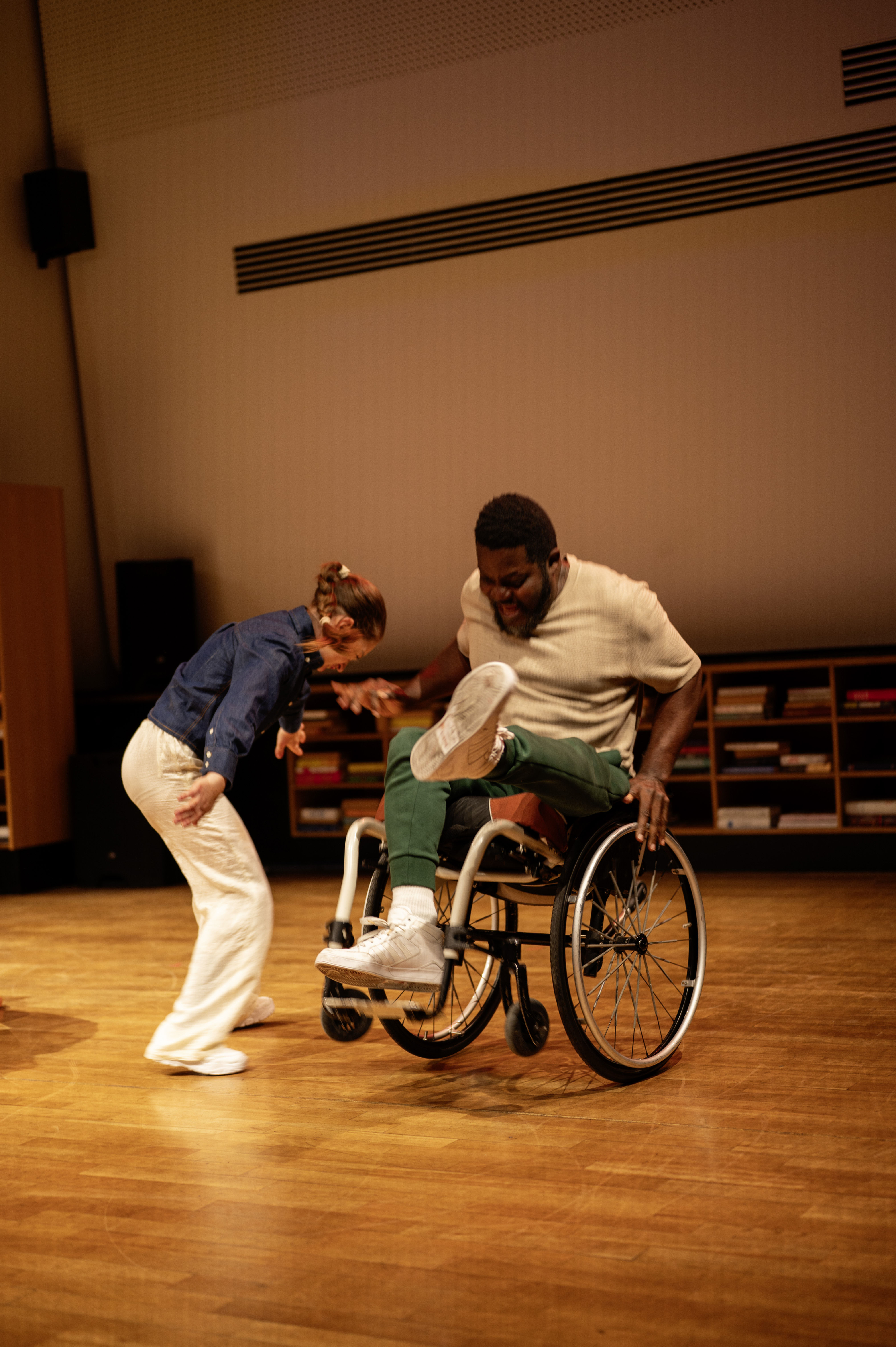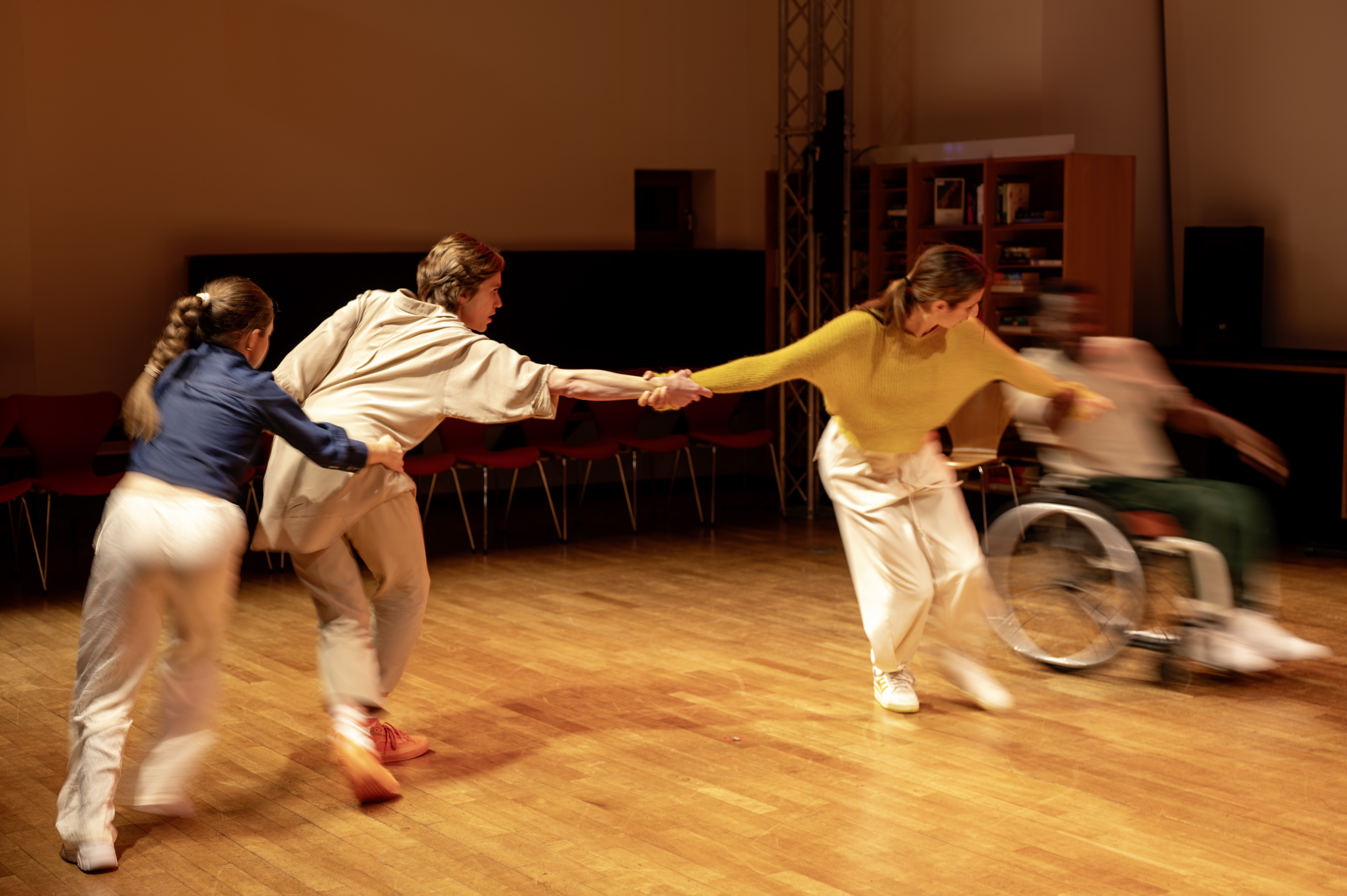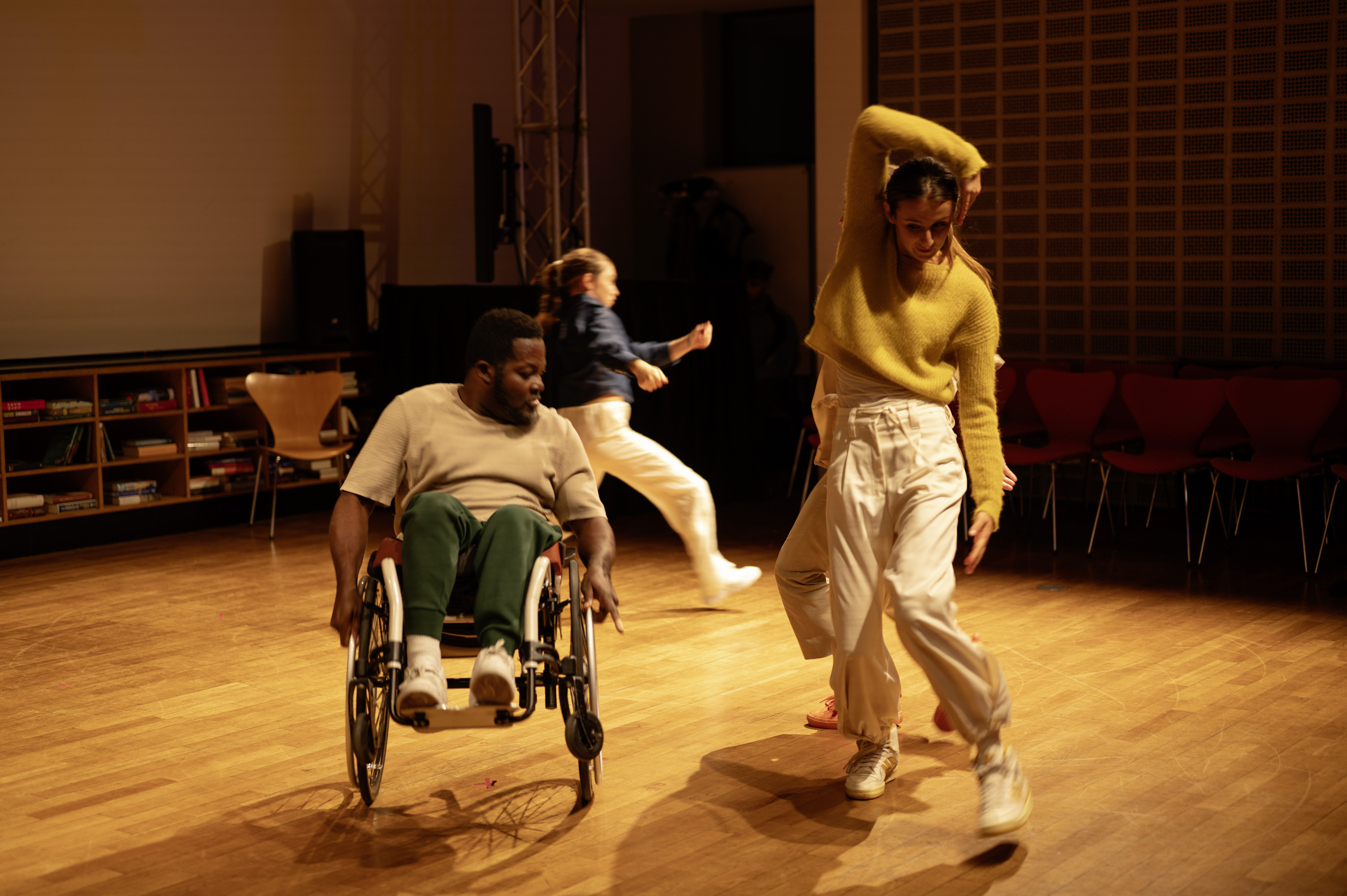 Books & Bodies is an inclusive dance work commissioned for Theatre Münster's 2025 season, performed at the Münster City Library, an architectural gem and anchor of the city's public life. It is available for touring and can be adapted for Libraries with large indoor spaces.